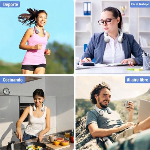 🌀 Con nuestro Ventilador Personal Portátil, olvídate de los días calurosos. 🌬️💨 Simplemente colócalo alrededor de tu cuello y disfruta de un agradable flujo de aire en tu rostro y nuca.
